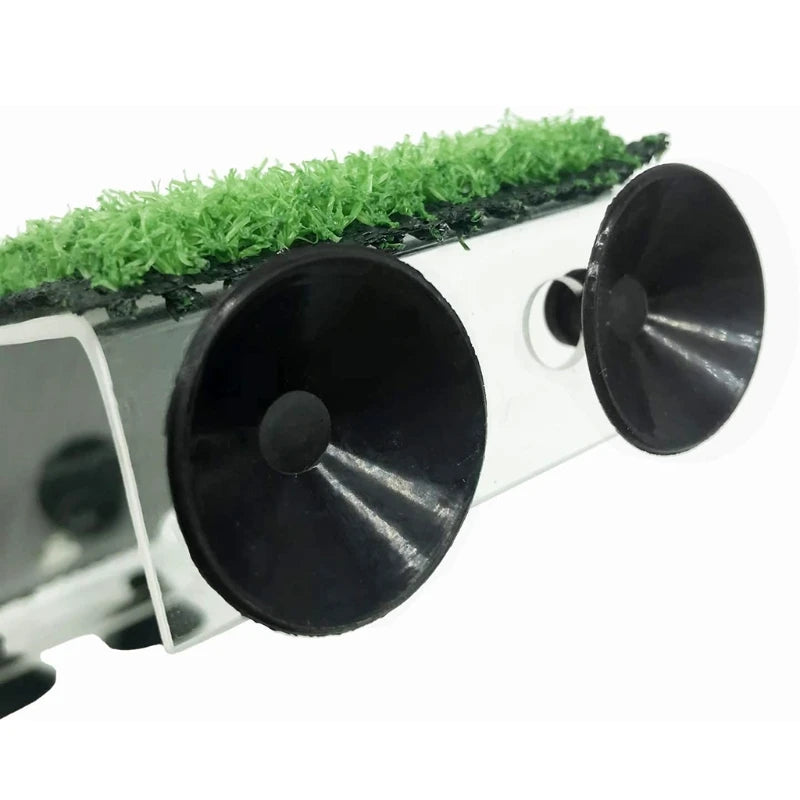It can be placed in a suitable position in the cylinder according to user needs.,Relying on the strong suction power of the sucker to make the turtle climb more stable.,Suitable slope and artificial turf make the environment in the tank more natural.,Relieve the stress of the tortoise and enhance the resistance by basking, which helps the tortoise grow up.,The turf can be changed flexibly to keep the tank clean at all times.,