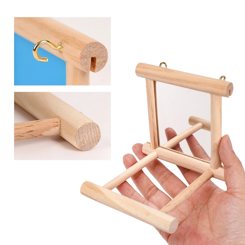 Bird Mirror Wooden Interactive Play Toy With Perch For Small Parrot Budgies Cockatiel Parakeet Conure Lovebird Cage Accessories